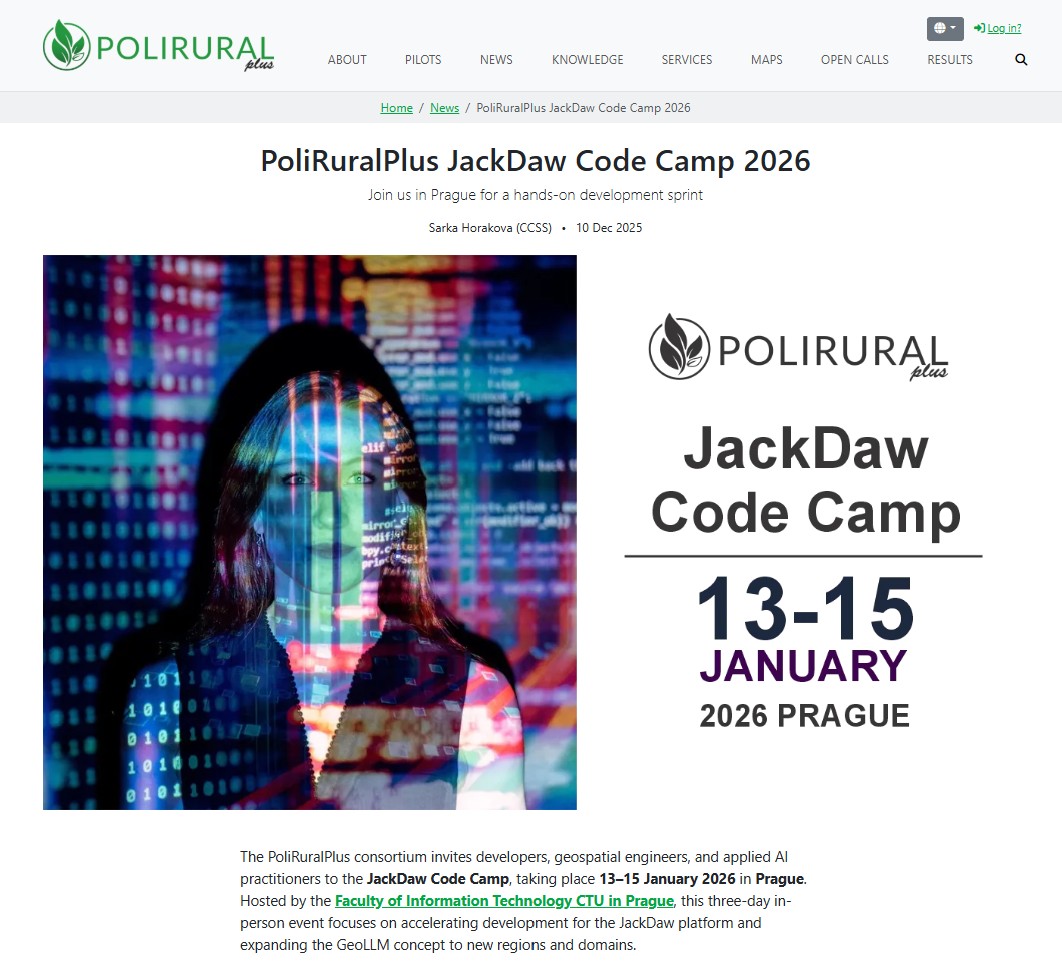 PAMEA participated in the PoliRuralPlus JackDaw Code Camp 2026, held in Prague on 13–15 January 2026 and hosted by the Faculty of Information Technology at the Czech Technical University in Prague. The three-day event brought together developers, geospatial experts, and applied AI practitioners for an intensive development sprint focused on advancing the JackDaw platform and extending the GeoLLM concept to new regions and application domains.